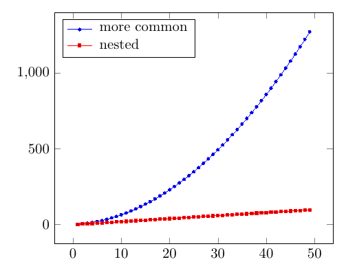 the $n^2$ term in $(3)$, whereas the “$\text{nested}$” method